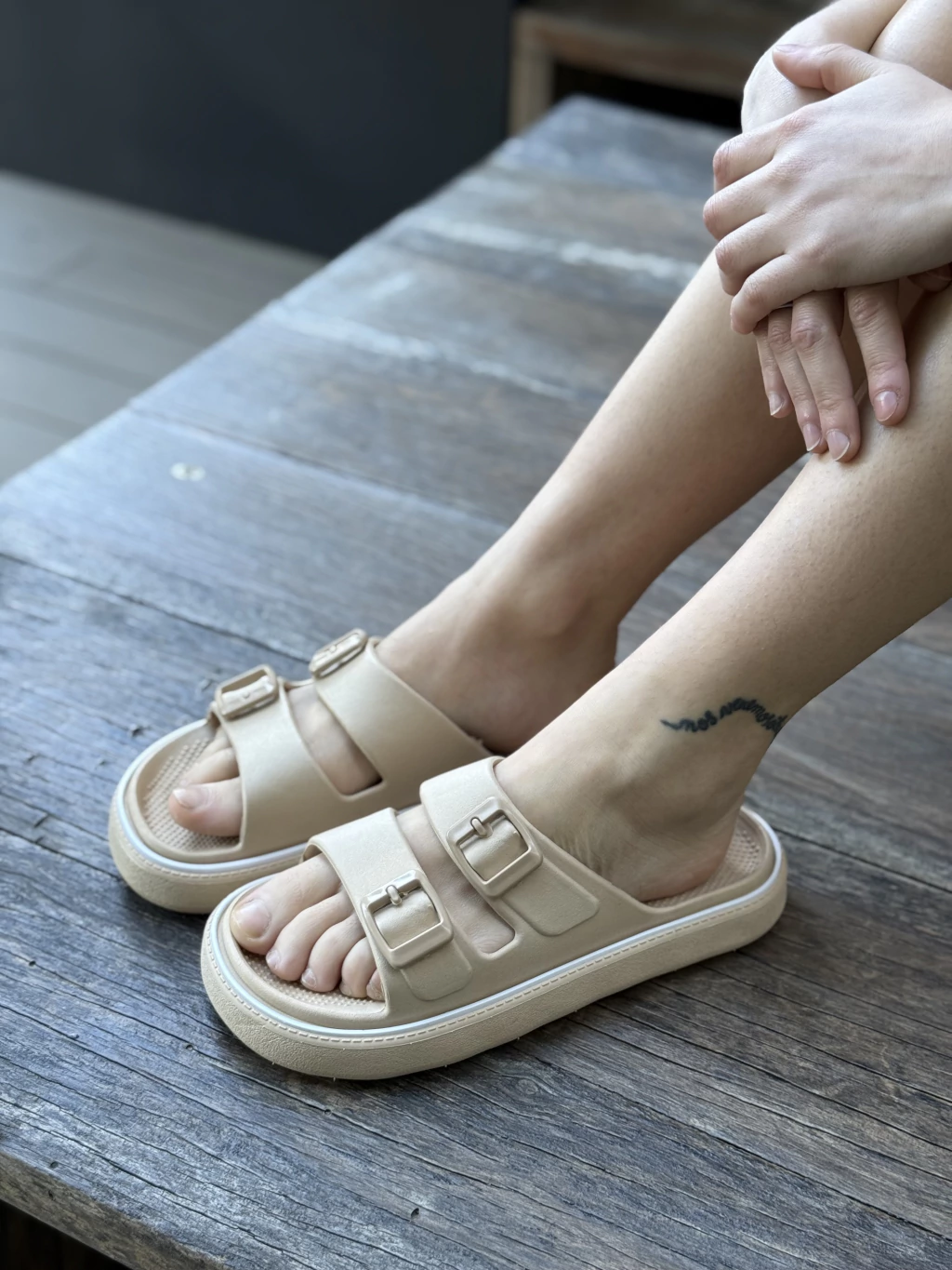 Con 2 tiras anchas y hebilla ajustable → para que calcen perfecto en tu pie.